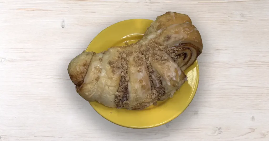 Flaky pastry layered with Cinnamon and Brown Sugar, topped with a Sweet Glaze and Crumbly Streusel.