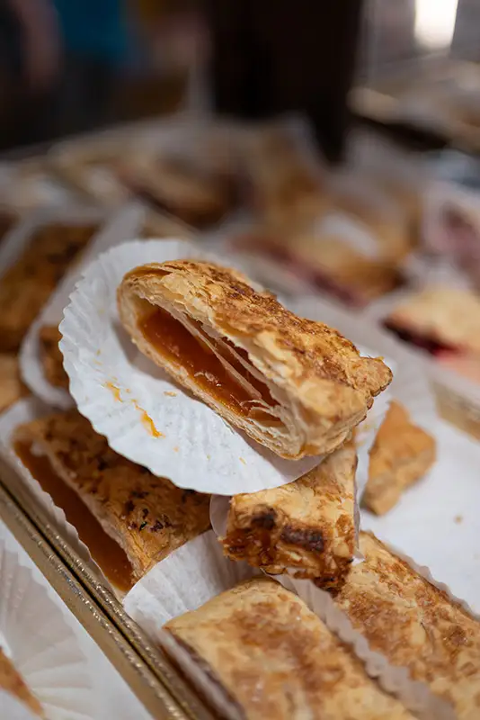 Flaky pastry filled with Sweet Raspberry and Mild Red Chile filling, baked until golden and dusted with Sugar Crystals.
