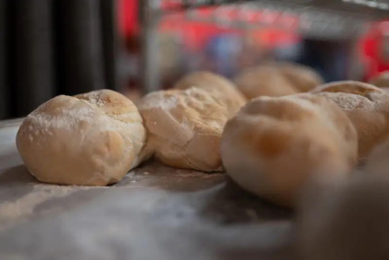 Freshly baked German bread rolls with a crisp golden crust and soft, airy center.